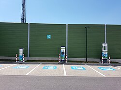 | Elektroauto-Ladestation bei der Raststation Bodensee in der Gemeinde Hörbranz in Vorarlberg , Österreich . | Eigenes Werk | Asurnipal | Datei:Raststation-Bodensee-Elektrotankstelle-02.jpg | |