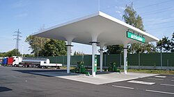| Raststation Bodensee in der Gemeinde Hörbranz in Vorarlberg , Österreich . LKW-Tankstelle auf den nordöstlichen Teil. | Eigenes Werk | Asurnipal | Datei:Raststation-Bodensee-Tankstelle LKW-NordOst-04.jpg | |
