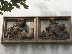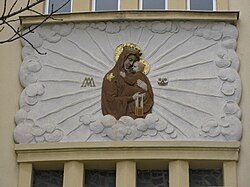 | Kachelbild "Spinnerin am Kreuz" (um 1938) an der Wohnhausanlage Triester Straße 85, Wien-Favoriten | Eigenes Werk | Buchhändler | Datei:Altdorferstraße 08.JPG | |