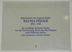 | Berliner Gedenktafel für Recha Freier (Fasanenstraße 79-80) in Berlin - Charlottenburg , Deutschland | photo taken by Doris Antony | Doris Antony , Berlin | Datei:Berlin GTafel Freier.jpg | |