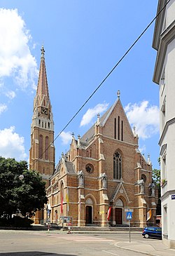 | Südostansicht der Marienkirche „Zu Unserer lieben Frau von der Immerwährenden Hilfe“ , eine Pfarr- und Klosterkirche im 17. Wiener Gemeindebezirk Hernals . .Ursprünglich als Klosterkirche der Redemptoristen von 1886 bis 1889 nach Plänen von Richard Jordan errichtet. Durch die Errichtung der Marienpfarre im Jahr 1937 erhielt sie auch den Status einer Pfarrkirche. Die in Sichtziegelbauweise und neugotischen Stil errichtete Kirche ist 42,60 m lang, 20 m breit und 20,80 m hoch. Der Turm an der linken Seite der Kirche hat eine Höhe von 61 m. | Eigenes Werk | C.Stadler/Bwag | Datei:Hernals (Wien) - Marienkirche (2).JPG | |