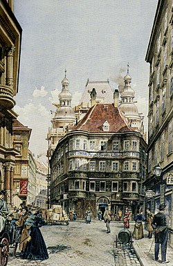 Das aus dem 14. Jahrhundert stammende, vielfach umgebaute Gebäude war unter anderem Ort eines historischen Treffens zwischen Kaiser Friedrich III. und dem Ungarnkönig Matthias Corvinus im Februar 1470.[1] Es wurde im Zuge des gründerzeitlichen Stadtumbaus Wiens 1896 trotz zahlreicher Proteste abgerissen. Der 1897 errichtete Nachfolgebau (Lugeck 4), ein Geschäftshaus von Architekt Neumann, versucht die Formensprache des zerstörten historischen Gebäudes aufzunehmen, allerdings rein äußerlich und in etwa doppeltem Maßstab.