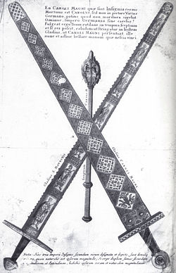 | Reichsschwert und Scheide im Kunsthistorischen Museum Wien . | Diese Datei ist ein Ausschnitt aus einer anderen Datei | Falk2 | Datei:I09 526 Reichsschwert (cropped).jpg | |