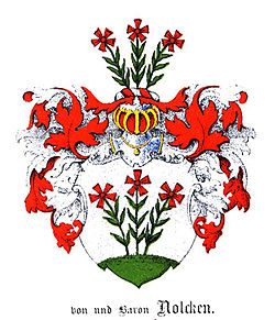 | Coat of arms of Nolken family. | http://www.stael-von-holstein.de/Verwandtschaftswappen.htm | Autor/-in unbekannt Unknown author | Datei:Nolken.jpg |