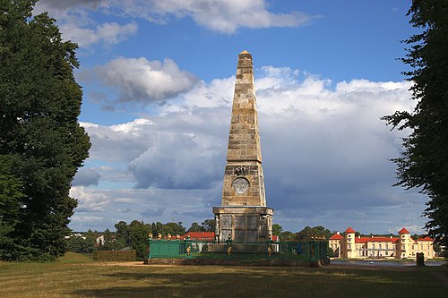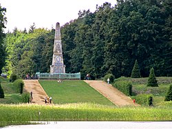 | Der Rheinsberger Obelisk, vom Grienericksee aus gesehen. Dahinter beginnt das FFH-Gebiet Forst Buberow. | Eigenes Werk | Spreepaula | Datei:Schloss Rheinsberg, Obelisk.jpg |