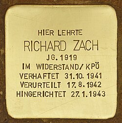 | Stolperstein für Richard Zach | Christian Michelides | Christian Michelides | Datei:Stolperstein für Richard Zach.JPG |