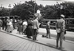 Ein erster Versuch einer Elektrifizierung in der Inneren Stadt erfolgte im Mai 1896, als ein Akkumulatorwagen die Strecke Burggasse–Bellaria befuhr;[3] die Akkumulator-Technik bewährte sich jedoch nicht. Nachdem 1897 die erste Straßenbahnstrecke Wiens, die Strecke der heutigen Linie 5, elektrifiziert wurde, konnte ein Jahr später die Elektrifizierung der Ringlinie abgeschlossen werden. Die letzte Pferdetramway wurde 1903 außer Dienst gestellt.