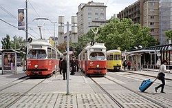 | Züge der Linie 2 in der Haltestelle Julius-Raab-Platz: E 1 4734+c 3 Richtung Ottakringer Straße/Erdbrustgasse, E 1 4801+c 4 1334 Richtung Friedrich-Engels-Platz | Eigenes Werk | Tokfo | Datei:2 Julius-Raab-Platz.jpg | |