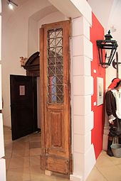 | Verbliebene Türe beim Ringtheaterbrand in Wien im Jahr 1881 bei der Feuerwehrausstellung im Stift Geras, Niederösterreich | Eigenes Werk | Karl Gruber | Datei:Stift Geras 0768.jpg |
