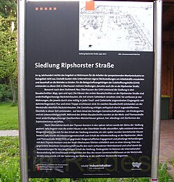 Zu Beginn der ersten Bauphase wurden Grundrisse der Siedlung und der Häuser auf der Weltausstellung Paris 1889 präsentiert.[2] Alle Häuser sind entsprechend der Bauabschnitte in die Liste der Baudenkmäler in Oberhausen eingetragen. Die Siedlung „Ripshorster Straße“ ist Bestandteil der Route der Industriekultur und darin Station der Themenrouten Oberhausen: Industrie macht Stadt und zusammen mit den GHH-Siedlungen Eisenheim, Stemmersberg und Grafenbusch Station der Themenroute Arbeitersiedlungen.[3]