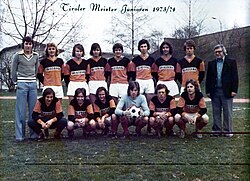 | Junioren-Mannschaft SC Kufstein 1973/74 mit Torwart Robert Blunder (kniend Mitte) | Eigenes Werk | Dantheman9999 | Datei:Junioren-Mannschaft SC Kufstein 1973-74 mit Torwart Robert Blunder.jpg | |
