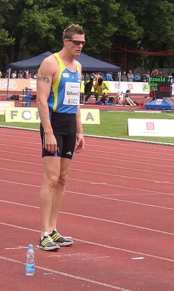 | Athlete Roland Schwarzl of Austria prepares for his attempt in long jump during men's decathlon at 4th edition of the TNT - Fortuna Meeting ( IAAF World Combined Events Challenge Meeting, Sletiště Stadium, Kladno, Czech Republic, 15 June 2010, 13:09). | Eigenes Werk | User:Miaow Miaow | Datei:Roland Schwarzl at TNT - Fortuna Meeting in Kladno 15June2010 085.jpg |