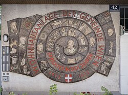| Billrothstraße 42 Kunst am Bau; Trude Diener-Hillinger; Döblinger Sonnenrad | Eigenes Werk | Thomas Ledl | Datei:Billrothstraße 42 Kunst am Bau.JPG | |