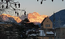 | Diese Datei zeigt das Baudenkmal mit der Nummer 13922 in Südtirol. | Eigenes Werk | Bartleby08 | Datei:Rosengartenblick von Talferbrücke Bozen Jan 2021.jpg | |