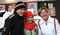 | Einkleidung des deutschen Teams für die Olympischen Winterspiele 2018 in Pyeongchang: Christian Neureuther, Aljona Savchenko, Rosi Mittermaier | Selbst fotografiert | Sandro Halank , Wikimedia Commons | Datei:2018-01-11 Olympiaeinkleidung Deutschland 2018 by Sandro Halank–51.jpg | |