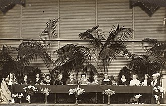| von links nach rechts: 1. Lucy Thoumaian - Armenien, 2. Leopoldine Kulka , 3. Laura Hughes - Kanada, 4. Rosika Schwimmer - Österreich-Ungarn, 5. Anita Augspurg - Deutschland, 6. Jane Addams - USA, 7. Eugenie Hanner , 8. Aletta Jacobs - Niederlande, 9. Chrystal Macmillan - GB, 10. Rosa Genoni - Italien, 11. Anna Kleman - Schweden, 12. Thora Daugaard - Dänemark, 13. Louise Keilhau - Norwegen | https://www.flickr.com/photos/lselibrary/22785141285/ | Autor/-in unbekannt Unknown author | Datei:International Congress of Women1915 (22785141285).jpg | |