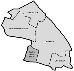 | Positionskarte des Favoritner Bezirksteils Rothneusiedl in Wien | Eigenes Werk | Eknuf | Datei:Favoriten lage rothneusiedl.png | |