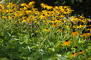 - Schwarzäugige Rudbeckie (Rudbeckia hirta L.): Mit vier Varietäten im östlichen Nordamerika verbreitet.