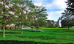 | Rudolf-Bednar-Park in Wien, Leopoldstadt. Blick von der Krakauer Straße Richtung Osten. | Eigenes Werk | Mach240390 | Datei:Rudolf-Bednar-Park-Nordbahnviertel-Leopoldstadt-AUT, Wiedeń.jpg | |