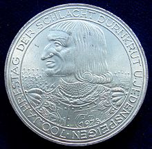 | A rare medallion d. = 61 mm. 96.93 g Ag. Rudolf I of Germany, 1273 - 1291 At this Hoftag (imperial diet) Rudolf invested his sons, Albert and Rudolf II, with the duchies of Austria and Styria and so laid the foundation of the House of Habsburg. The King of Germany (King of the Romans) Rudolf I at the Hoftag in Augsburg. On scroll in exergue: "27. December 1282"/ 4 lines: "SECHS JAHRHUNDERTE MILDER HERRSCHAFT WOBEN EIN HEILIG BAND VM FVERST VND VOLK", surrounding: "* ZVR GEDENKFEIER DER BELEHNVNG HABSBVRGISCHER FVERSTEN MIT DEM STAMMLANDE OESTERREICH 27. DECEMBER 1882 *". Hallmark at edge: "A". Wurzbach 6926 (Bronze). Medallist: (Anton) Scharff, 1845 Wien, Austria - 1903 Brünn, the second largest city in the Czech Republic Condition: EXTREMELY FINE, beautiful old patina. | Eigenes Werk | Berlin-George | Datei:Augsburg, Silver Medal 600th Anniversary of 1282 Hoftag.jpg | |