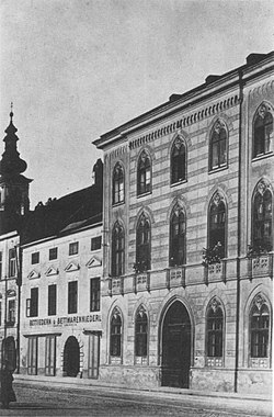 | Das Stammhaus der Rudolf Leiner GmbH am St. Pöltner Rathausplatz | Karl Gutkas: St. Pölten in alten Fotografien . 1979, ISBN 3-85326-491-3 . | Vinzenz Höfinger (†1936) | Datei:Rudolf Leiner Stammhaus 1906.jpg |