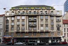 | Das Wohn- und Geschäftshaus „Fürstenhof“ an der Adresse Praterstraße 25 im 2. Wiener Gemeindebezirk Leopoldstadt . Das Gebäude wurde im Auftrag von Georg Spielmann 1913 von dem Architekten Rudolf Perco errichtet. Die Skulpturen (Vier Jahreszeiten) an der Fassade schuf Alfonso Canciani . Ursprünglich befand sich im Gebäude ein Kaffeehaus gleichen Namens sowie ein Theater. | Eigenes Werk | C.Stadler/Bwag | Datei:Wien - Wohn- und Geschäftshaus „Fürstenhof“.JPG |