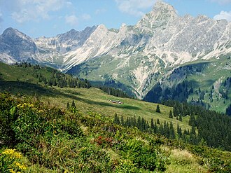 | Montafon ist ein 39 km langes Tal im Bundesland Vorarlberg im äußersten Westen von Österreich. Im Bild: Blick auf die Zimbagruppe (2.643 m) in den Ostalpen. Im Vordergrund die Platzisalpe. | Eigenes Werk | Nikater | Datei:Außergolm03.jpg | |