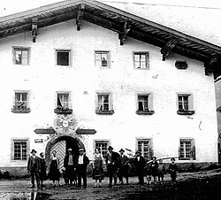 - Ein Bild am Erker des Gasthauses Oberbräu in Hopfgarten im Brixental (neben anderen Landesverteidigern)