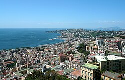 | veduta da castel Sant'Elmo (Napoli) sulla zona di Mergellina e verso Posillipo. Sullo sfondo a destra il promontorio di Capo Miseno e dietro ancora le isole di Procida e Ischia dominata dalla vetta del Monte Epomeo. Autore foto: Roberto De Martino | Eigenes Werk | Dr.Conati | Datei:Veduta su Mergellina, Posillipo e isole Flegree.jpg | |