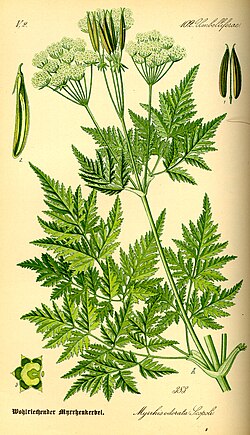 | Original Description: Körvel, Myrrhis odorata (L.) Scop. | «Bilder ur Nordens Flora» Stockholm | Carl Axel Magnus Lindman | Datei:265 Myrrhis odorata.jpg | |