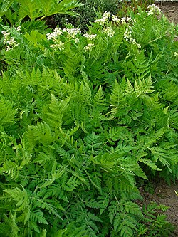 | Myrrhis odorata , Apiaceae, Süßdolde, Myrrhenkerbel, Habitus. Botanischer Garten KIT, Karlsruhe, Deutschland. | Eigenes Werk | H. Zell | Datei:Myrrhis odorata 001.JPG | |