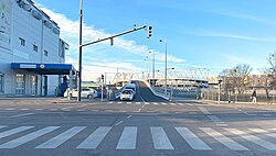 | Die Franz-Grill-Straße auf Höhe Faradaygasse mit dahinter liegender Südbahnhofbrücke. Blickrichtung Südwesten. | Eigenes Werk | Hangman'sDeath | Datei:1030 Wien, Franz-Grill-Straße mit Südbahnhofbrücke 2023-02-21.jpg | |