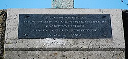 | Tafel am Südmährerkreuz in Kleinschweinbarth in Niederösterreich | Eigenes Werk | GuentherZ | Datei:GuentherZ 2012-03-03 0725 Kleinschweinbarth Schweinbarther Berg Suedmaehrerkreuz Tafel.jpg | |