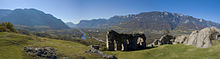 | Italien, Südtirol, Haderburg, Aussichtsplattform, Blick Richtung Norden auf Salurn (Panorama-Bild) | Eigenes Werk | Richard Huber | Datei:Aussichtsplattform Harderburg, Blick über Salurn.jpg | |