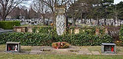 | Grabanlage für zivile Kriegsopfer des Jahres 1945, die ursprünglich auf dem Areal des Pflegeheimes Lainz beigesetzt und später hierher verlegt wurden. | Eigenes Werk | GuentherZ | Datei:2016-02-27 GuentherZ (02) Wien12 Südwestfriedhof alter Teil Gedenkstätte für Kriegstote1945.JPG | |