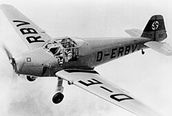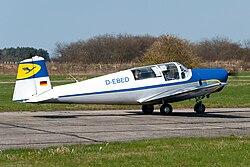 | Bücker Bü 181 Bestmann Am zweiten Flugzeug sind bereits die meisten von Udets Beanstandungen behoben. Die Einstiegstüren sind zwar schon einteilig, aber immer noch nach oben zu öffnen. Form und Größe des Seitenleitwerks entsprechen noch nicht der Serie. | de:Benutzer:ADL | holder of copyright: de:Benutzer:ADL | Datei:Bücker 06.jpg | |