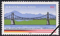 | Dieses Bild zeigt ein Baudenkmal. Es ist Teil der Denkmalliste von Bayern, Nr. D-1-72-122-38. | Eigenes Werk | Michael Burgholzer | Datei:Laufen, Länderbrücke (3).jpg | |