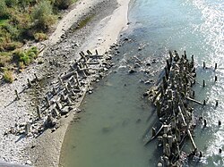 | Die Holzbrücke war die wichtige Verbindung zwischen Laufen (D) und Oberndorf (A). Sie wurde bei einem der Hochwasser Ende des 19. Jahrhunderts zerstört. | Eigenes Werk | WizzSilent | Datei:Reste Holzbruecke Laufen Oberndorf.jpg | |