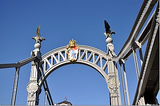 - ↑ Ursprünglich bestand die Fahrbahn aus einer Schotterdecke auf Zoreseisen mit Längsrippen; später wurde dies durch eine Betonplatte ersetzt.