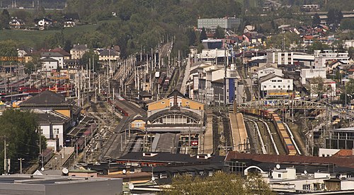 Im Ersten Weltkrieg wurde hier eine k.u.k. Bergestelle für feindliches Beutegut[36] eingerichtet. Schon seit dieser Zeit ist am Frachtenbahnhof auch die Verladestation der heutigen Rollenden Landstraße (RoLa/ÖKOMBI seitens der Rail Cargo Austria)[37] der Salzburg-Tiroler-Bahn – Tauernbahn durch den Tauerntunnel (Tauernschleuse) Richtung Italien, Südosteuropa und Asien, zum Bahnhof Triest-Fernetti.[38]