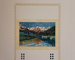 | Eines von zehn Fliesenbildern in der ehemaligen Schalterhalle des Hauptbahnhofs Salzburg mit Motiven aus dem Land Salzburg | Eigenes Werk | Eweht | Datei:Hauptbahnhof Salzburg Halle - Bild 04.jpg | |