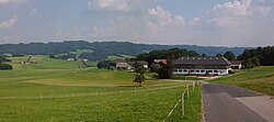 | Weiler St. Alban, Gemeinde Lamprechtshausen, Bundesland Salzburg; im Hintergrund der Haunsberg und links das Dorf Eisping, Gemeinde Nußdorf am Haunsberg | Eigenes Werk | Eweht | Datei:Weiler St Alban.jpg |