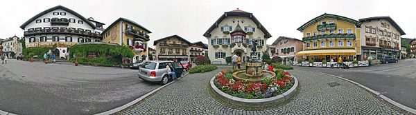 | 360°-Panoramabild auf dem Mozartplatz in St. Gilgen (Salzkammergut) | Selbst fotografiert | Hd pano | Datei:Mozartplatz.jpg | |