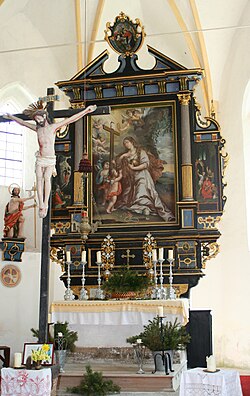 | Altar der Kirche von St. Magdalena im Halltal, wurde 1614 für die Kirche Absam gestiftet und 1685 hinauftransportiert. Das Altarbild mit Maria Magdalena stammt von Paul Ainhauser aus dem Jahr 1703 Quelle: Franz Grass, St. Magdalena im Halltal in der Gegenwart. | Eigenes Werk | Haneburger | Datei:Altar von St. Magdalena im Halltal.jpg | |