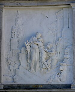 | Grillparzer-Denkmal im Volksgarten, Wien, 1889 Relief "Sappho" von Rudolf Weyr | Selbst fotografiert | Photo: Andreas Praefcke | Datei:Wien Grillparzerdenkmal Relief Sappho.jpg |