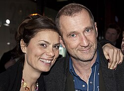 | Sarah Wiener, Austrian entrepreneur and cook with her then friend, now husband Peter Lohmeyer, German actor, at the Volkswagen People’s Night 2008 | cropped version of ipernity.com | Siebbi | Datei:Sarah Wiener and Peter Lohmeyer (Berlin Film Festival 2008).jpg |