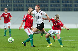 | FIFA Women's World Cup 2015: Qualifying Round St. Pölten, 13.09.2014 Sarah Zadrazil, Tímea Gál | Eigenes Werk | Ailura | Datei:20140913 1946 W AUT HUN 1540.jpg | |