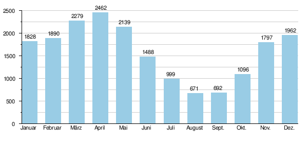 Die Durchflussmenge der Save wurde über 58 Jahre (1926–84) in Sremska Mitrovica knapp 100 Kilometer oberhalb der Mündung gemessen (in m³/s).[2]