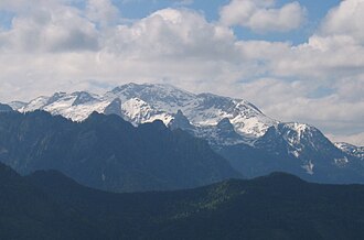 | Blick vom Schönberg auf den Hohen Sarstein. Der Dachstein ist von Wolken umhüllt. | Eigenes Werk | Bahnhofsralf | Datei:Totes Gebirge Schoenberg.jpg |