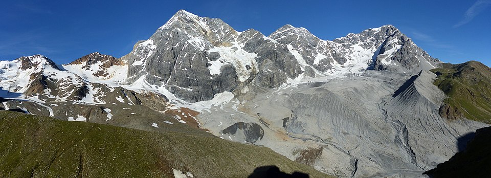 | Panorama von der Schaubachhütte: Schrotterhorn, Kreilspitze, Königspitze, Zebrù, Ortler mit Suldenferner und dessen Moräne. Das Bild ist aus vier Einzelbildern zusammengesetzt. | Eigenes Werk | Whgler | Datei:Schaubachhütte Panorama.jpg | |